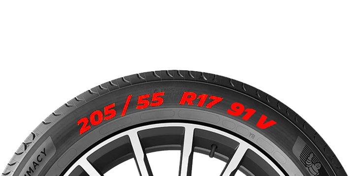 For instance, if you see a tyre marked as 205/55R17 91V, it means: